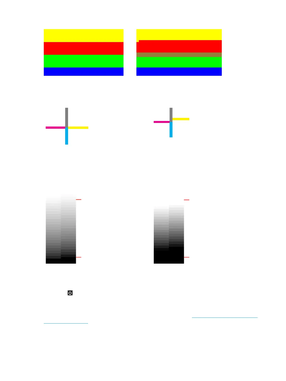 Looking at pattern H, you may nd a problem with the color calibration of the printer (CLC process). If you can