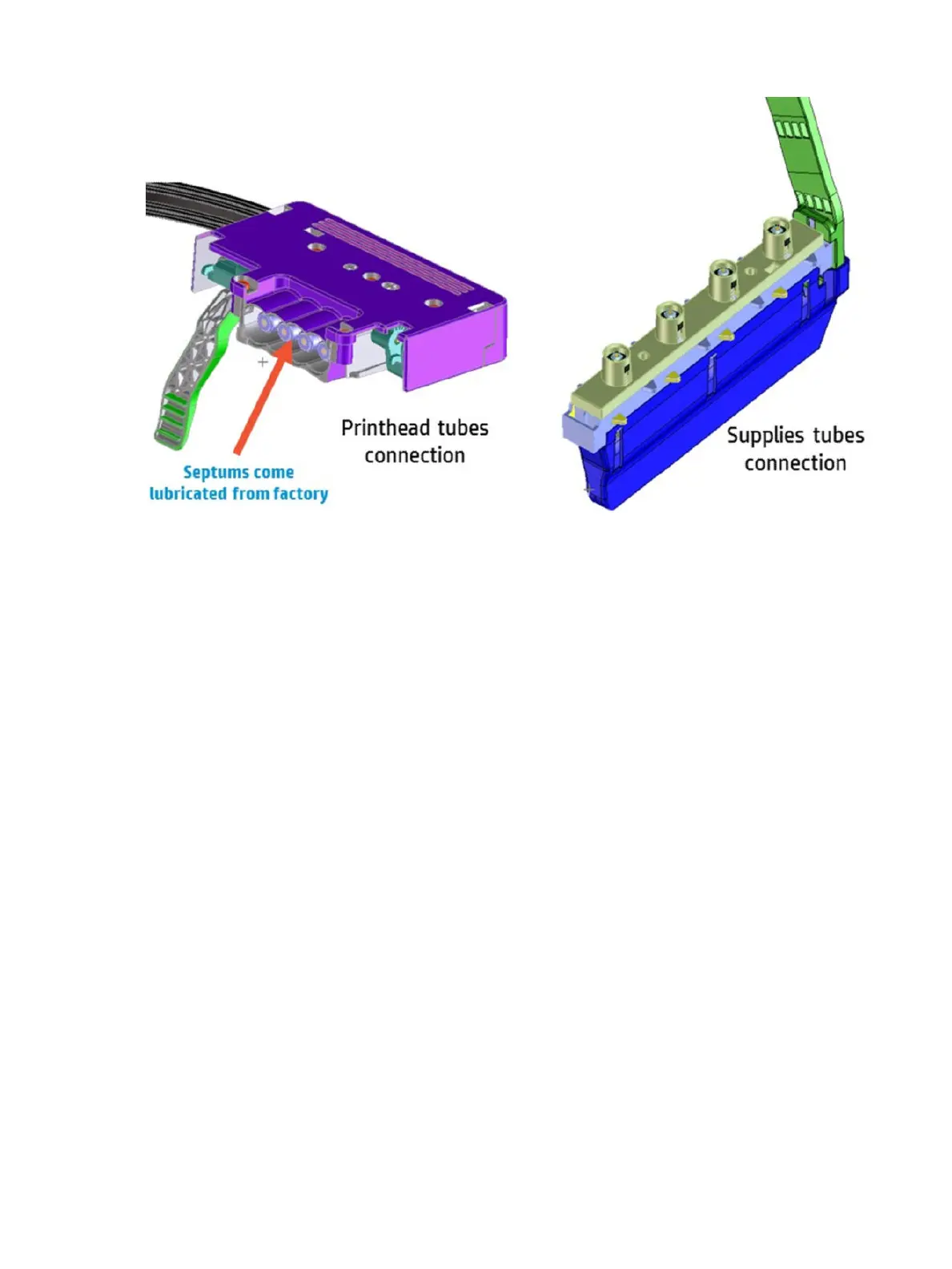 The ink tubes come connected to the printhead and are pre-installed in the carriage, but manual connection