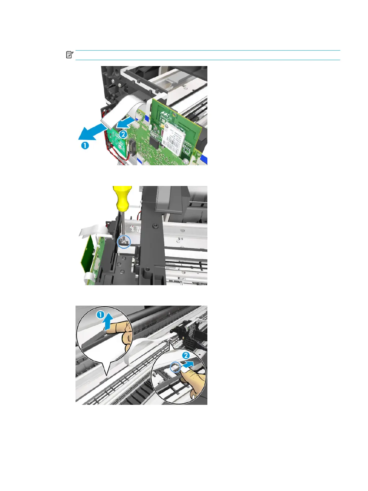 15. Unclip the trailing cable retainer clip shown here (1) and slide it to the right (2).