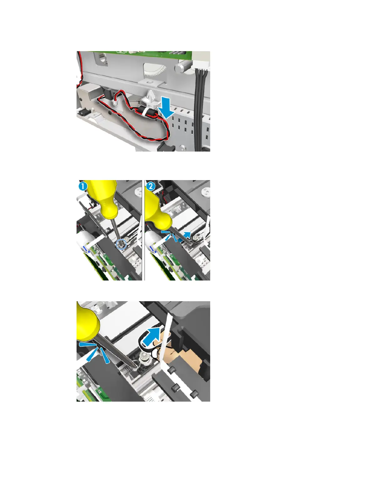 10. Keep the screwdriver inserted while levering and at the same time releasing the left end of the Belt from