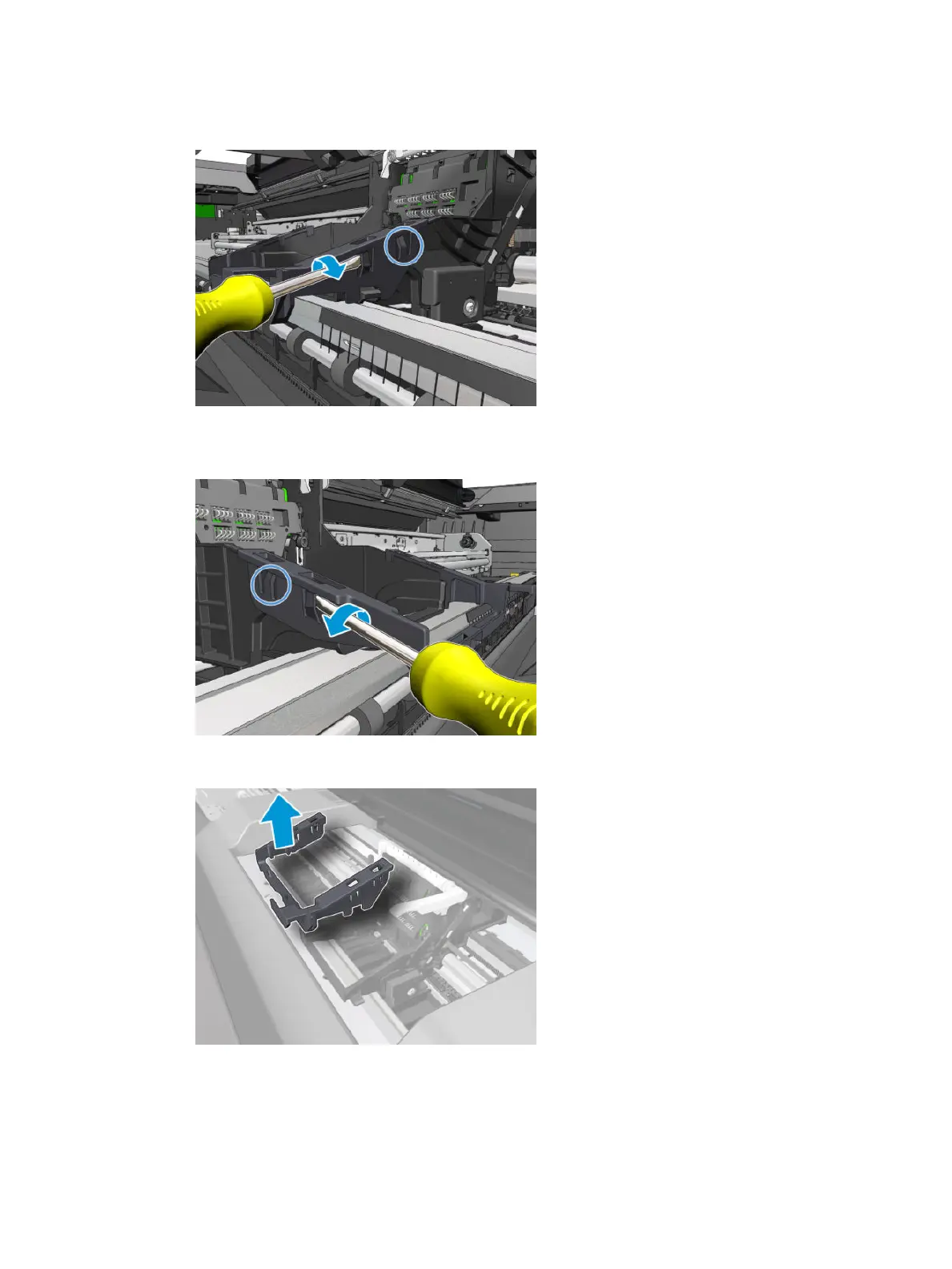 5. Use the tool provided with the Cutter Assembly Kit to lever up the two prongs attaching the Cutter