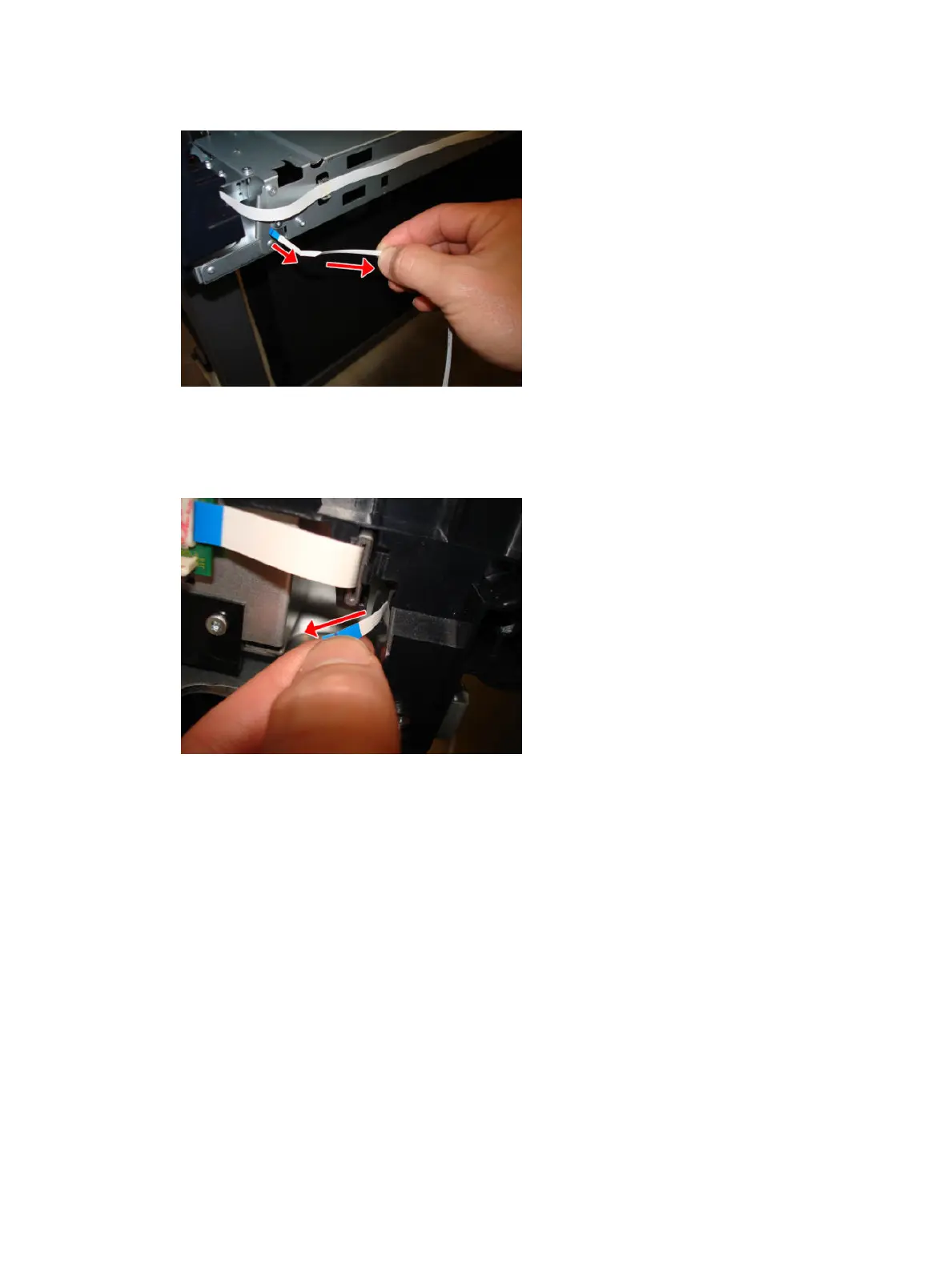 When you pass the Out-Of-Paper Sensor Cable through the hook, make sure that the blue end of the