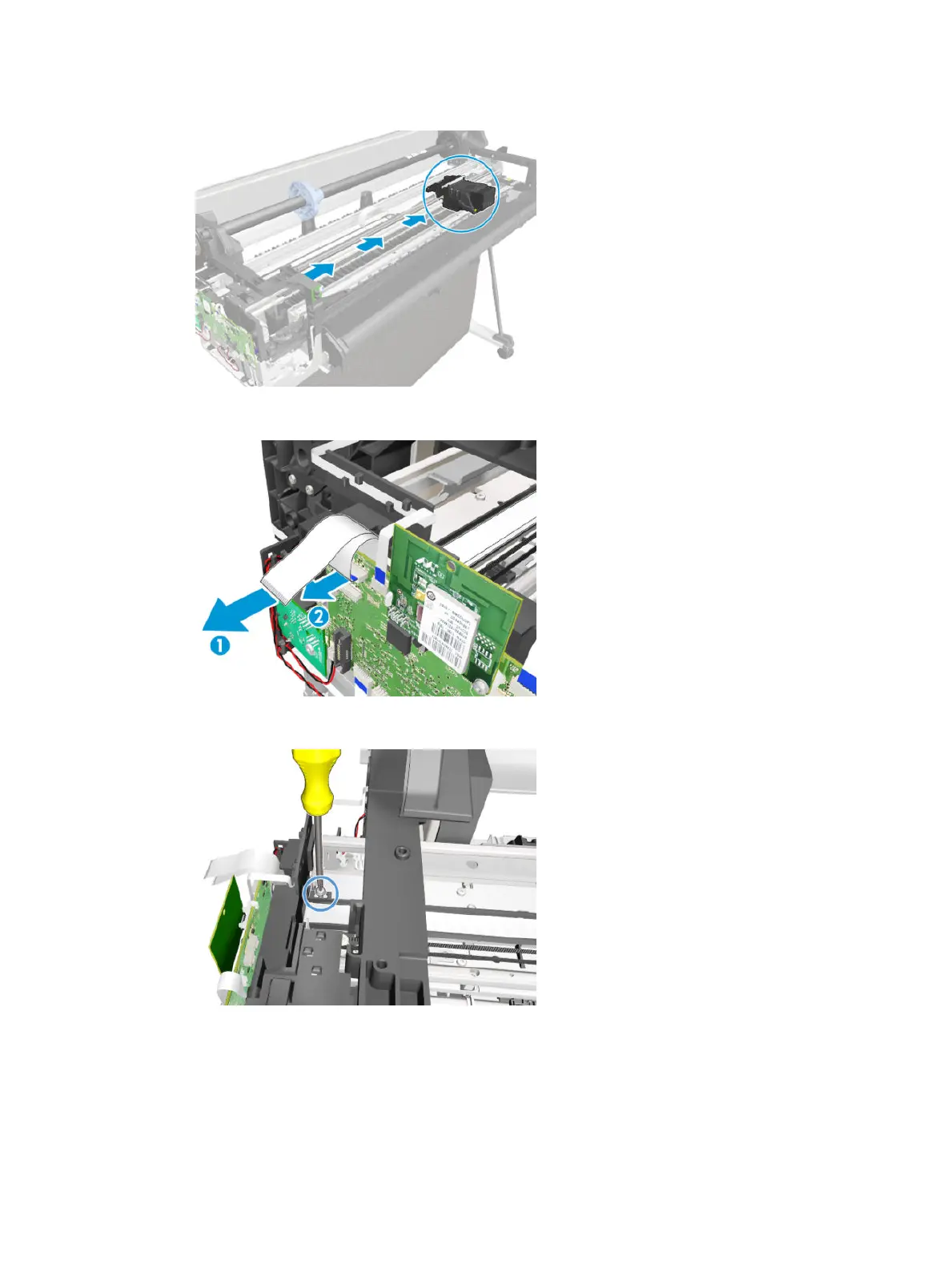 13. Disconnect the two at trailing cables from the Main PCA.