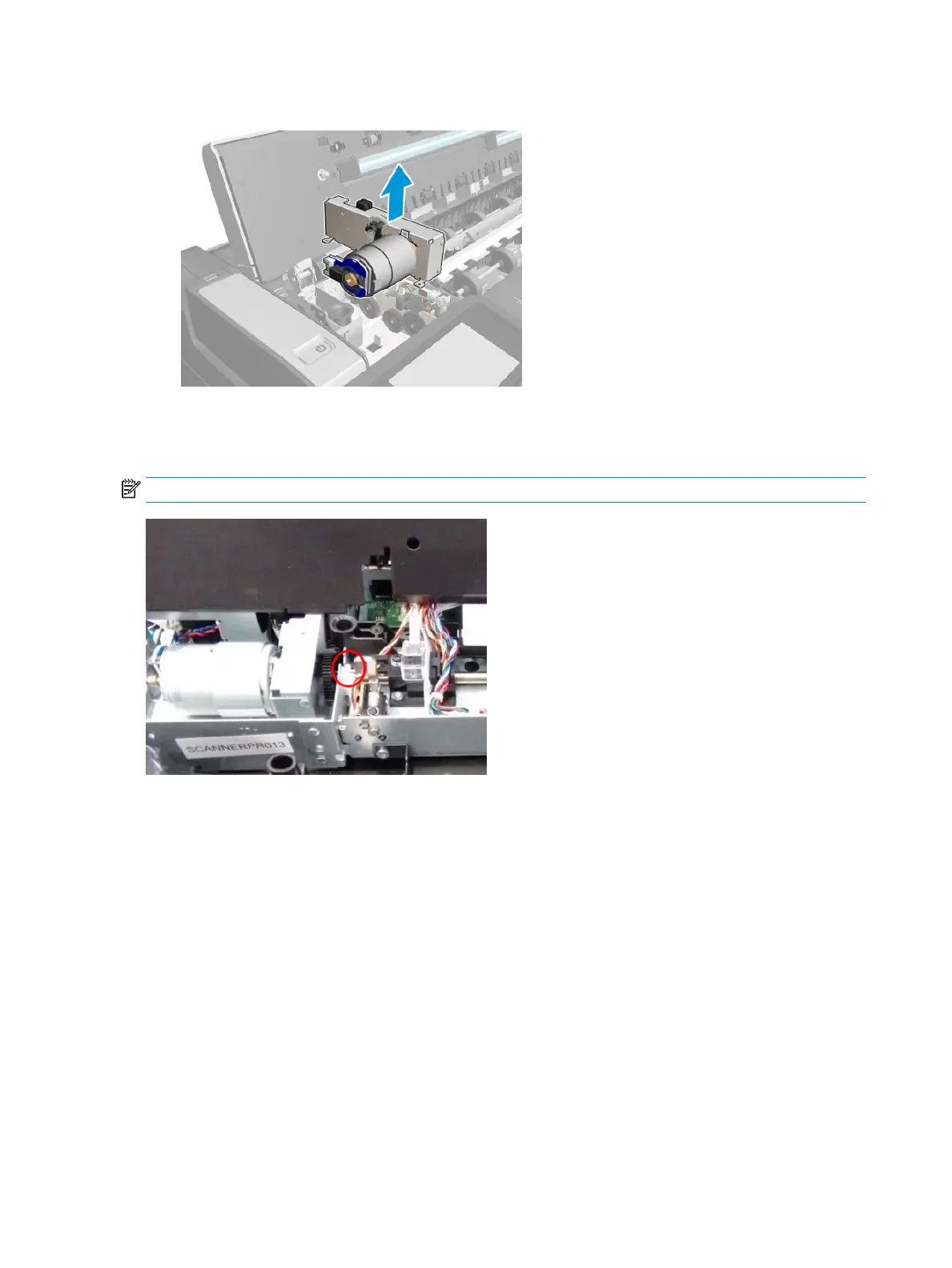 NOTE: Make sure that the motor gear train pin is inserted into the scanner wall.