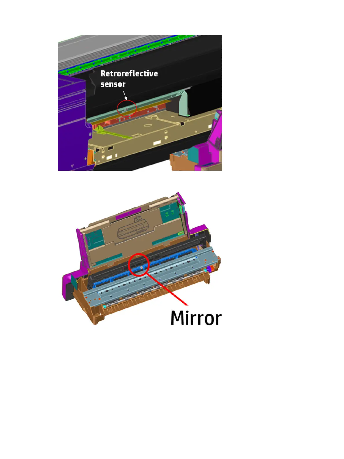 There is also a small mirror, located behind the media on the Multi-sheet Tray separator plate. This