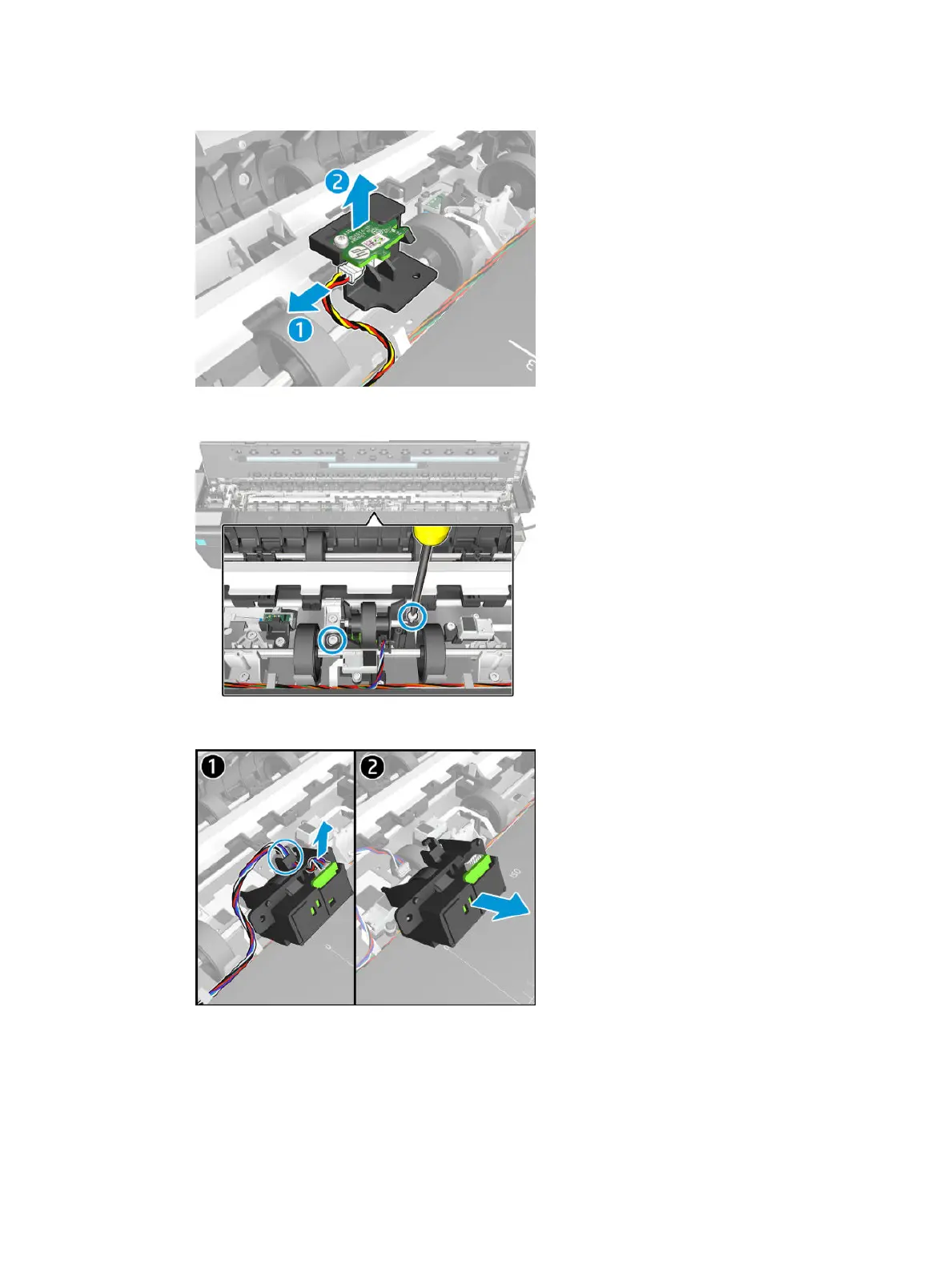 7. Disconnect and detach the cable from the OPT Wheel.
