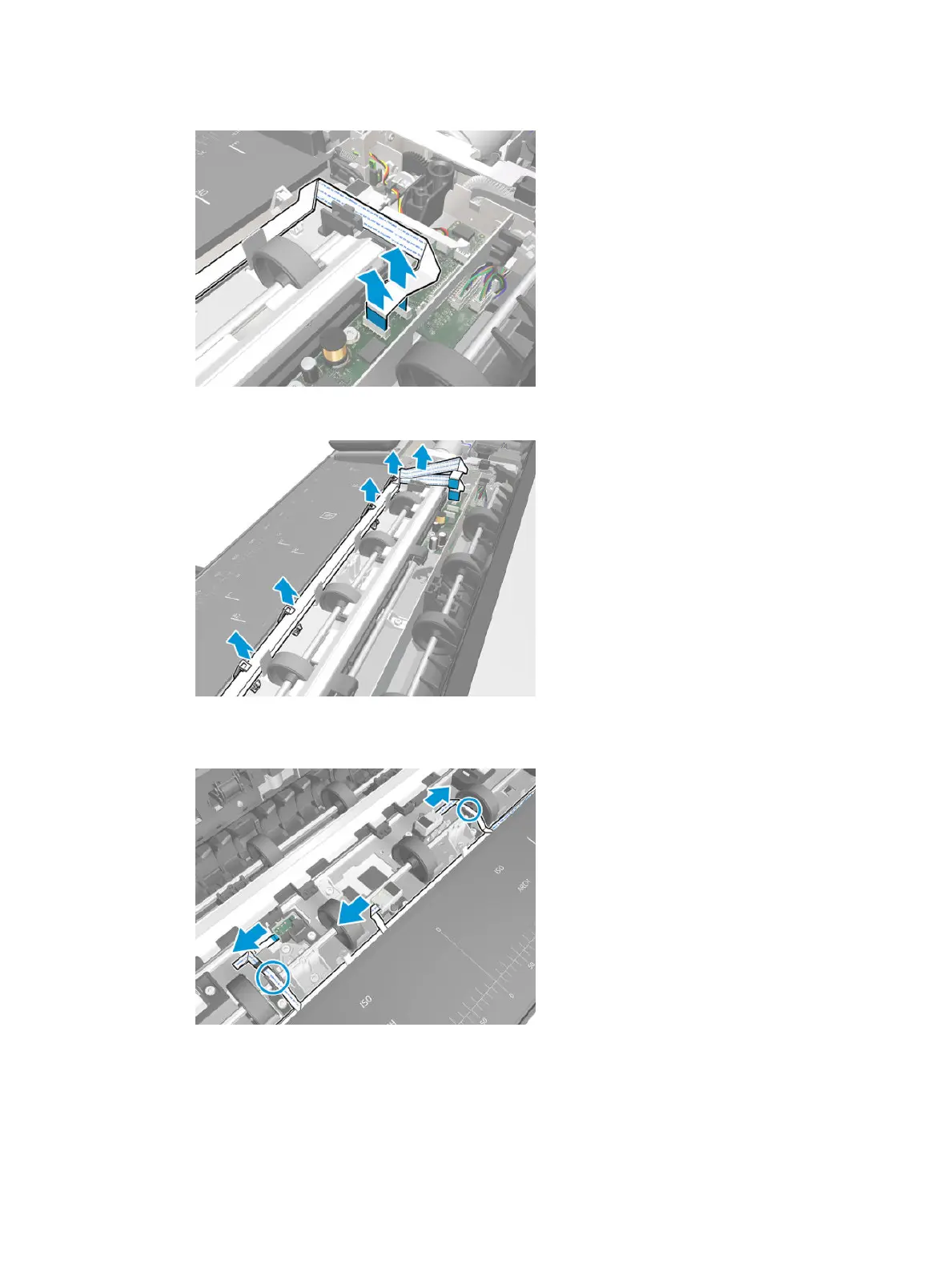 11. Disconnect two FFC cables from the Scan Bundle Board PCA.