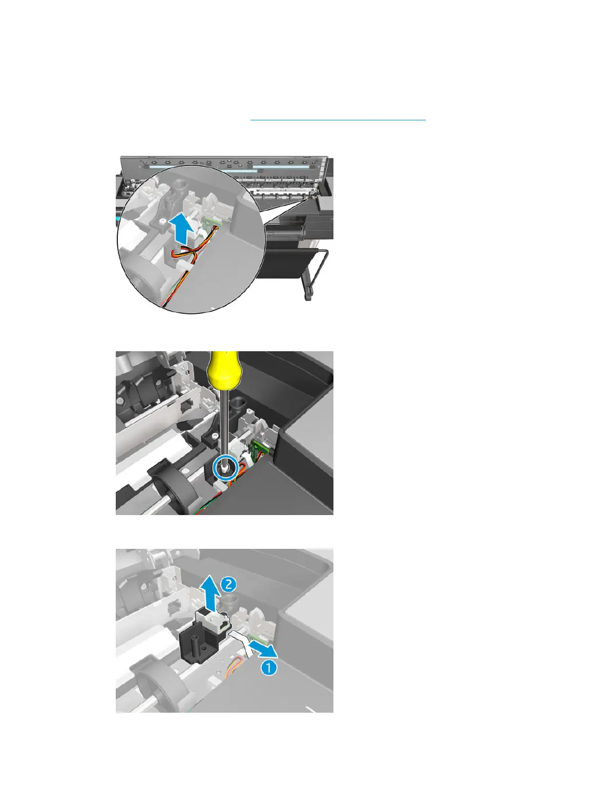 4. Disconnect the cable and remove the OPT Right Optical Sensor.
