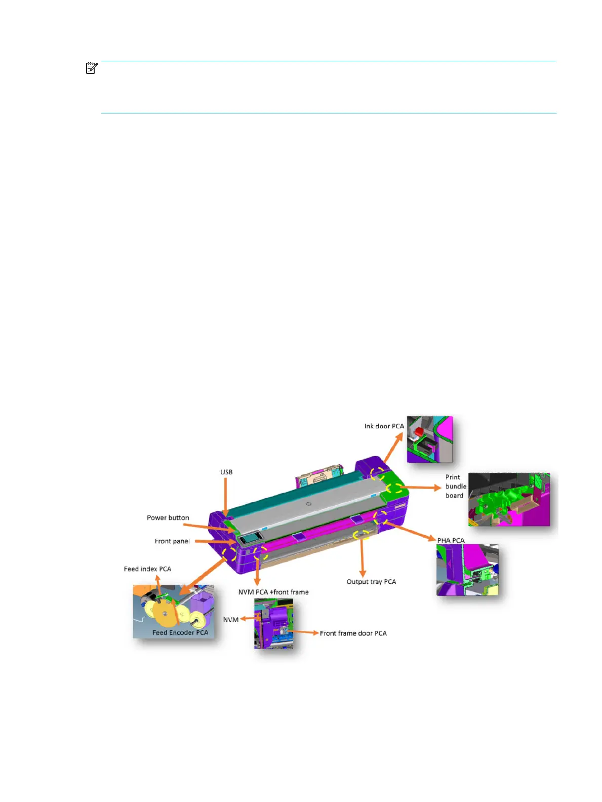 There are three main active boards (Main PCA, Printer Bundle Board, and MFP only; Scanner Bundle