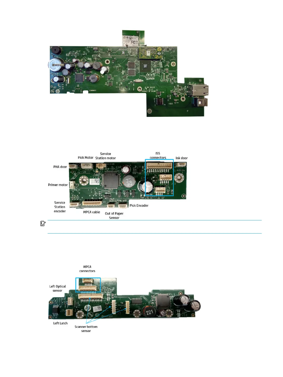 The Scanner Bundle board is located inside the scanner. It manages scanner sensors and the scanner motor