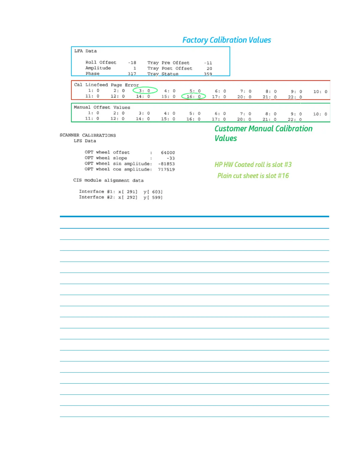 Typical calibration values should range from -20 to +20 in user and manual advance calibration.