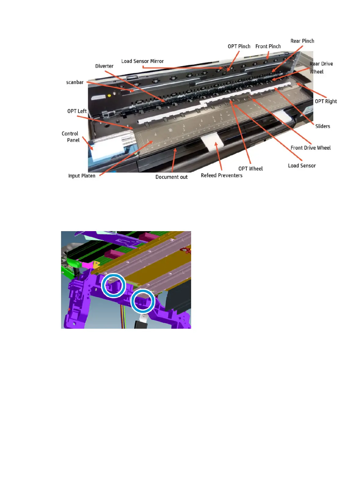 The scanner is attached to the printer with 4 screws. Assembly is from top down, but it is necessary to slide it