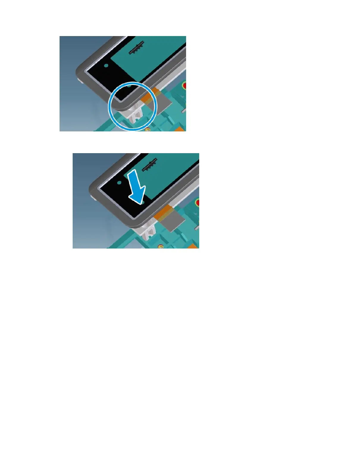 Place the long screw boss of the front panel sub-assembly into the pocket and press it down until it sits