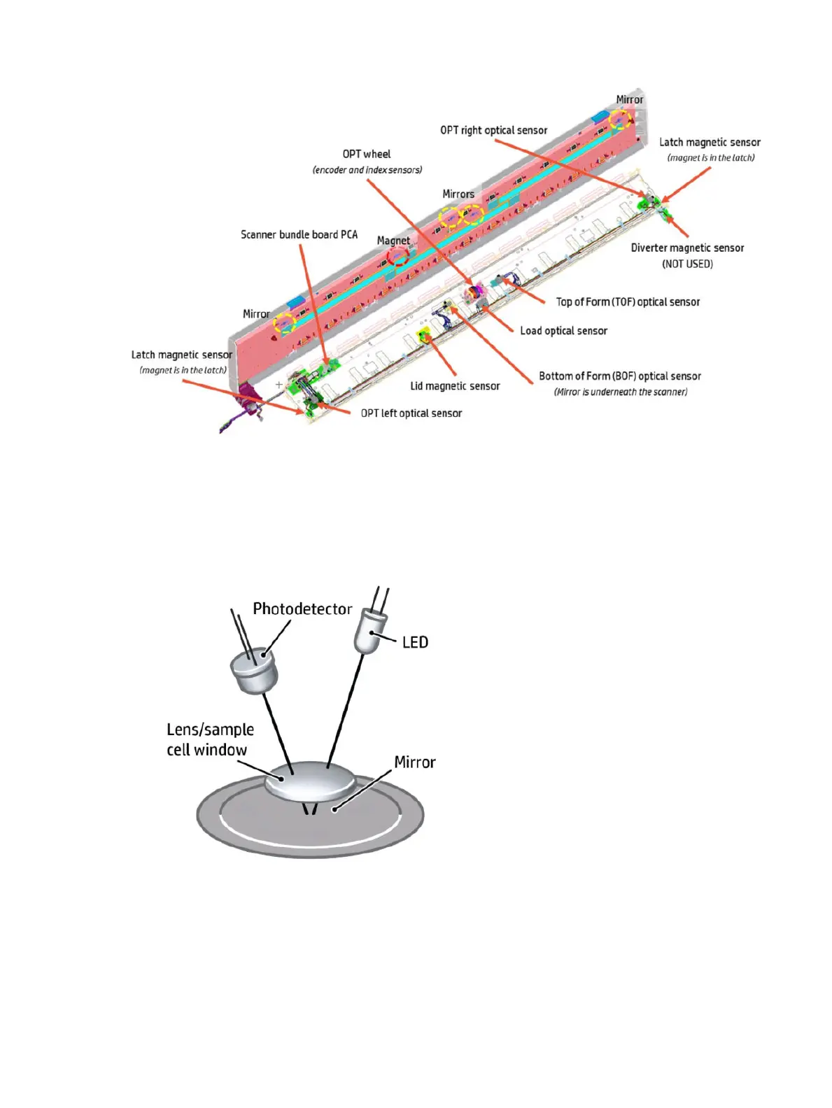 Mirror Sensor (Optical): The Optical sensor contains an LED that sends a beam of infrared light towards