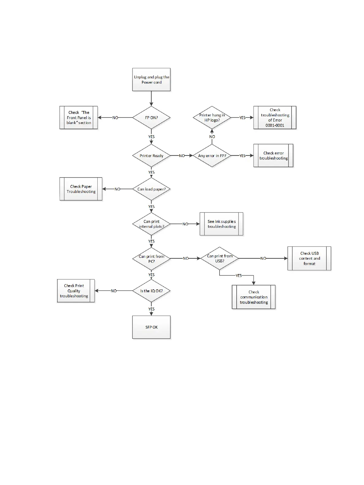Printer troubleshooting owchart: SFP