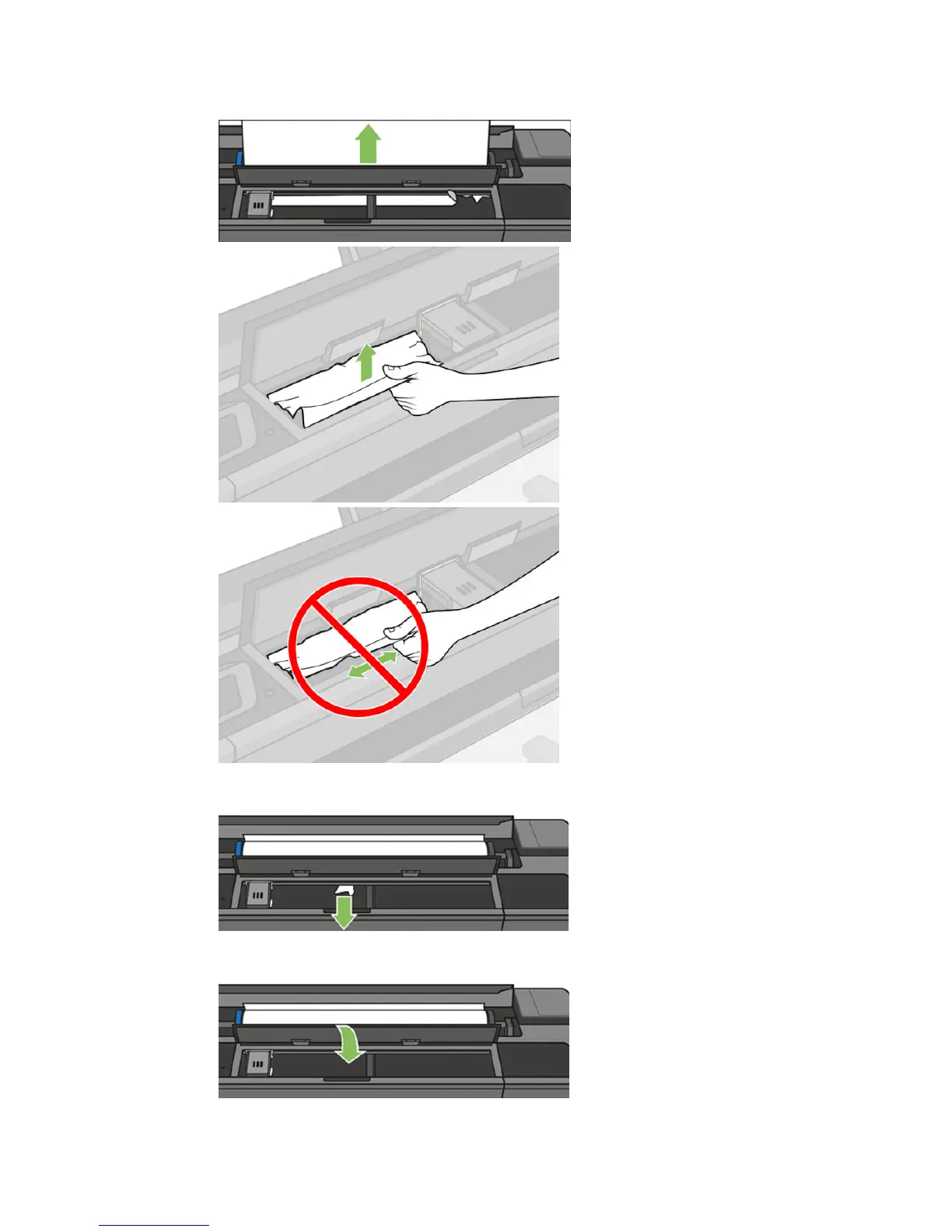 6. Carefully remove any of the jammed paper that you can lift up and out from the top of the printer.