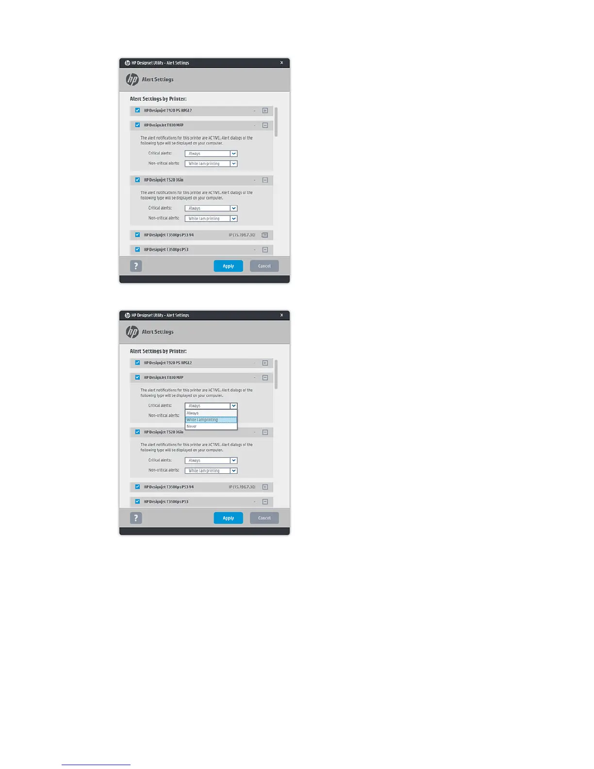 Open HP Printer Monitor preferences, select your printer, and then Customize Alerts, so that you can set
