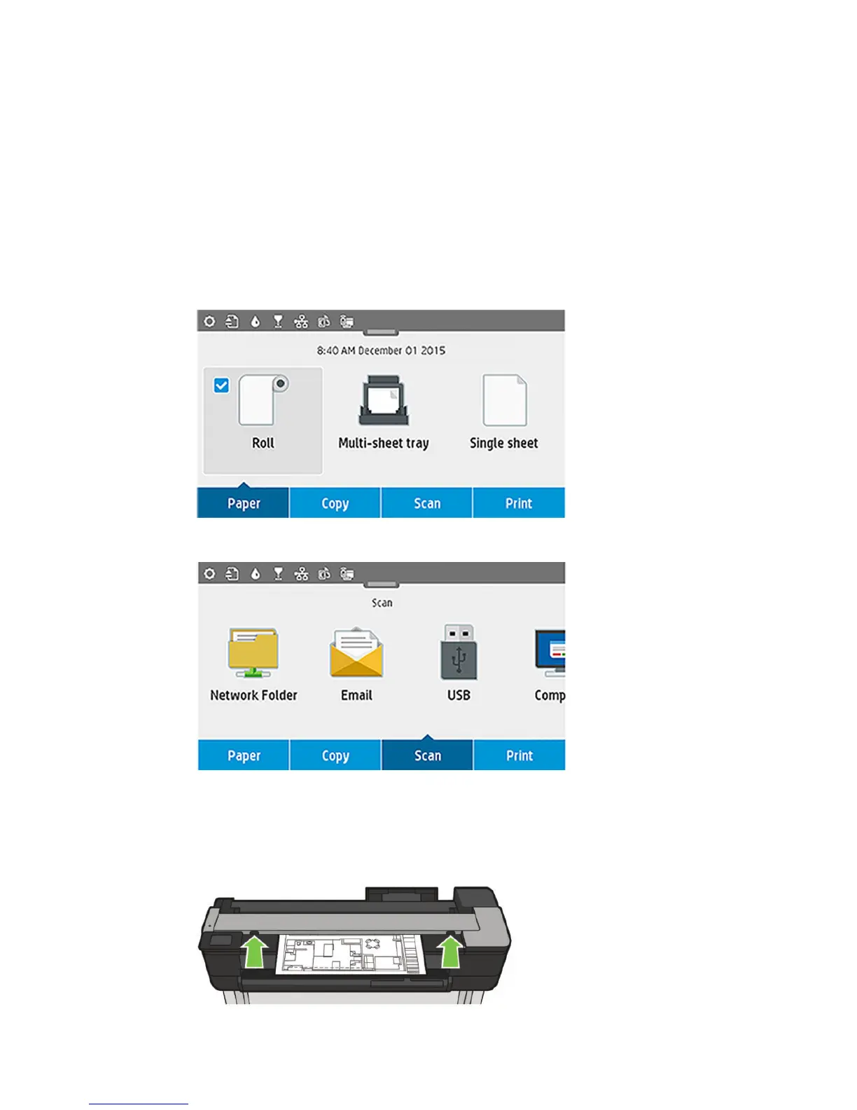 Load the sheet with the printed side facing upwards (you can also load the sheet before step 1, if you