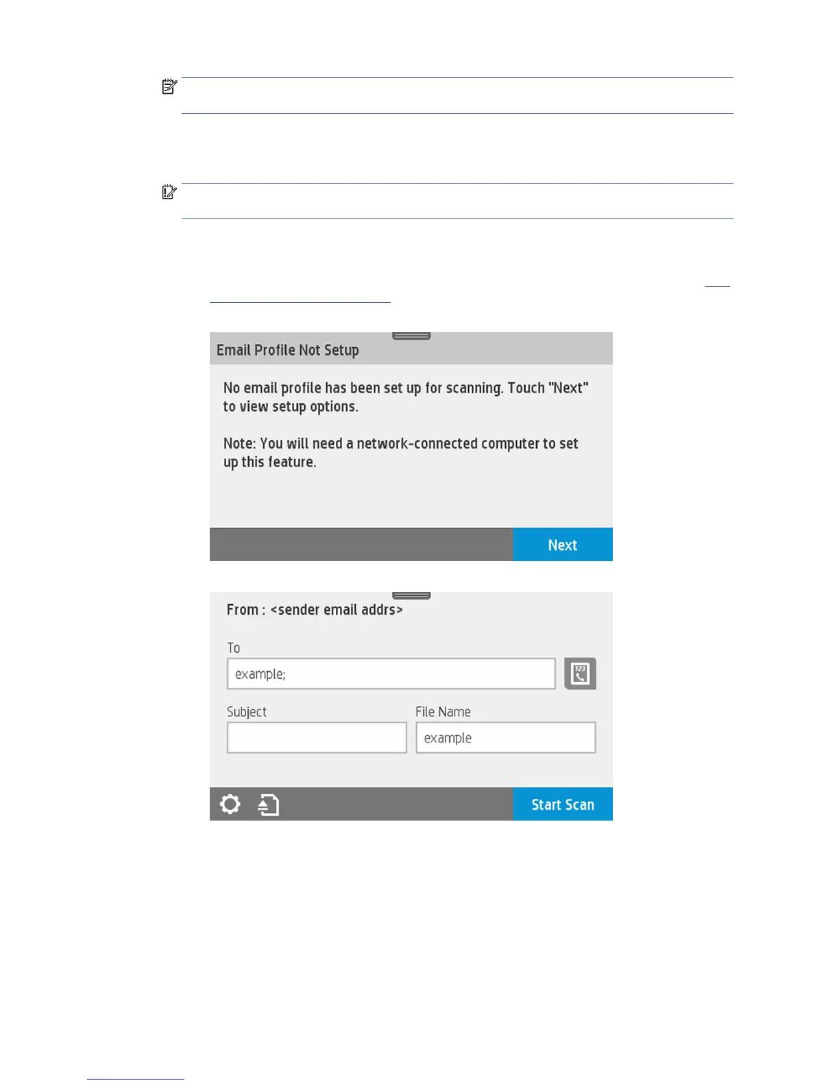 Scan to email user interface options: