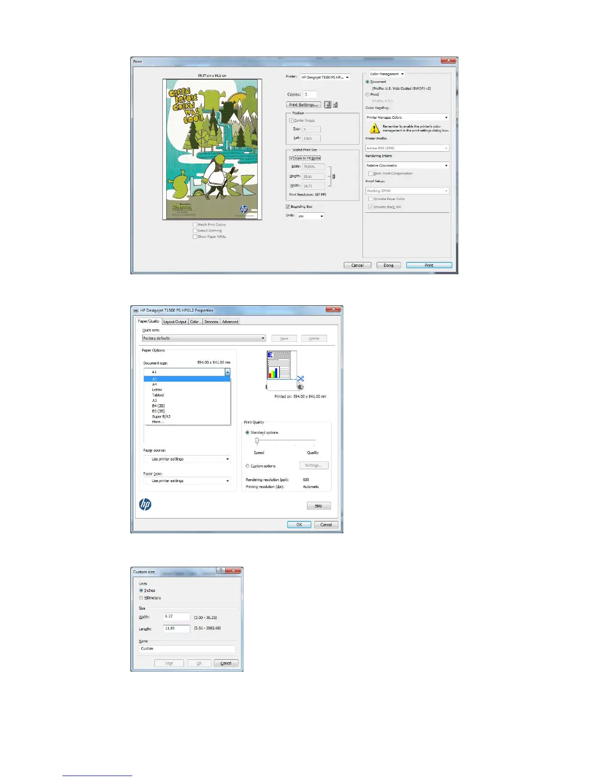 If you do not find the size that you intend to use, press the Custom button. Enter the width, the length,