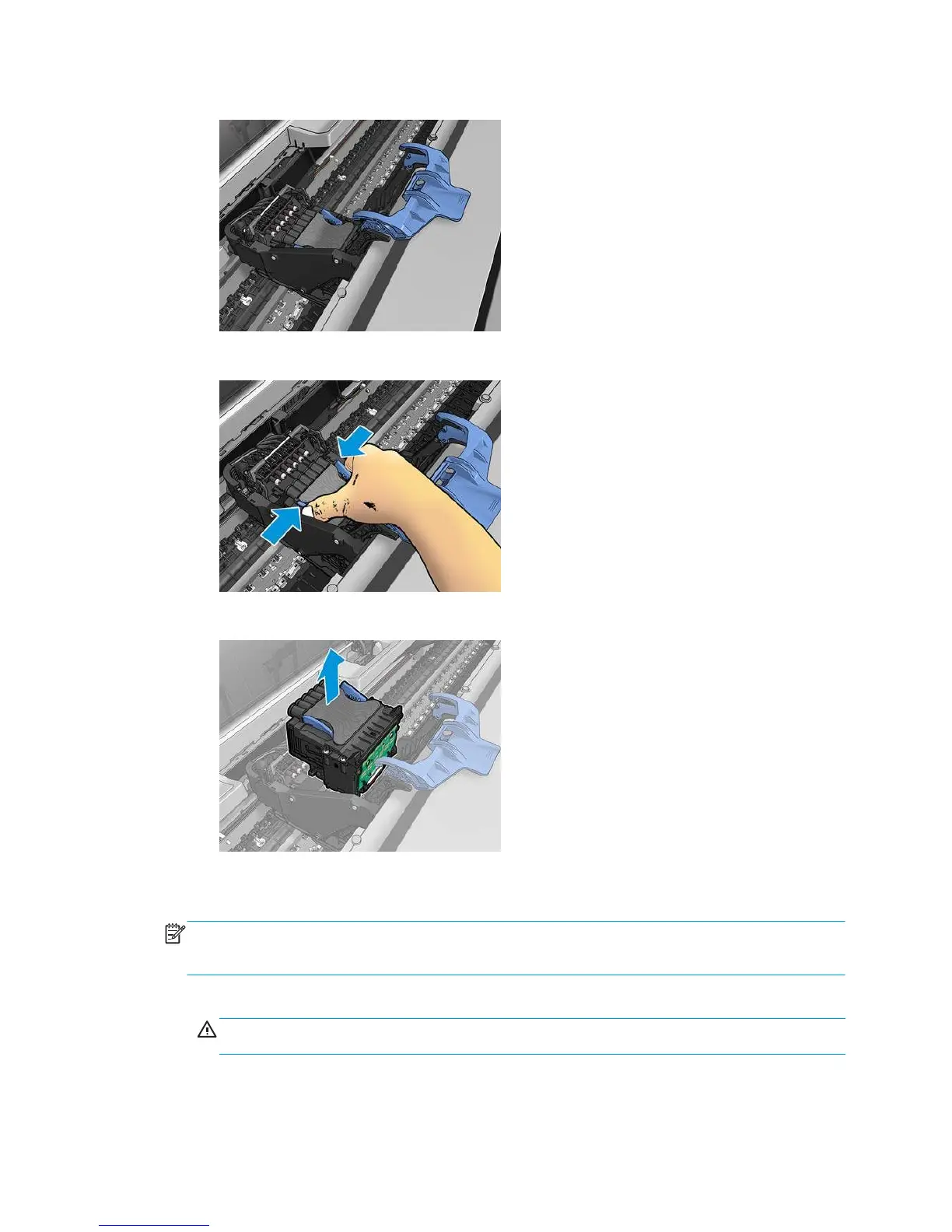 7. Grasp the printhead by the blue pieces on each side.