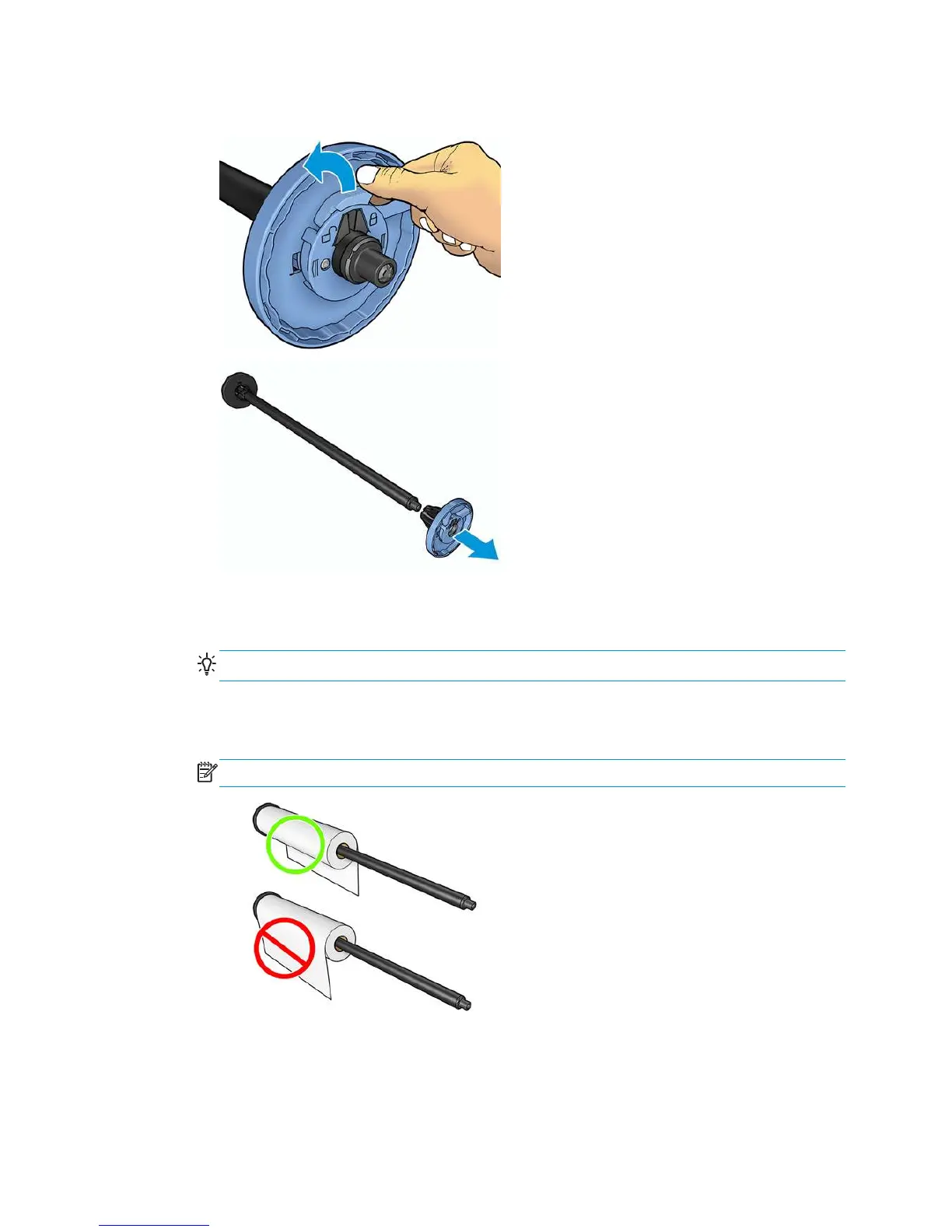 6. Slide the new roll onto the spindle. Make sure the paper type is oriented as shown. If it is not, remove