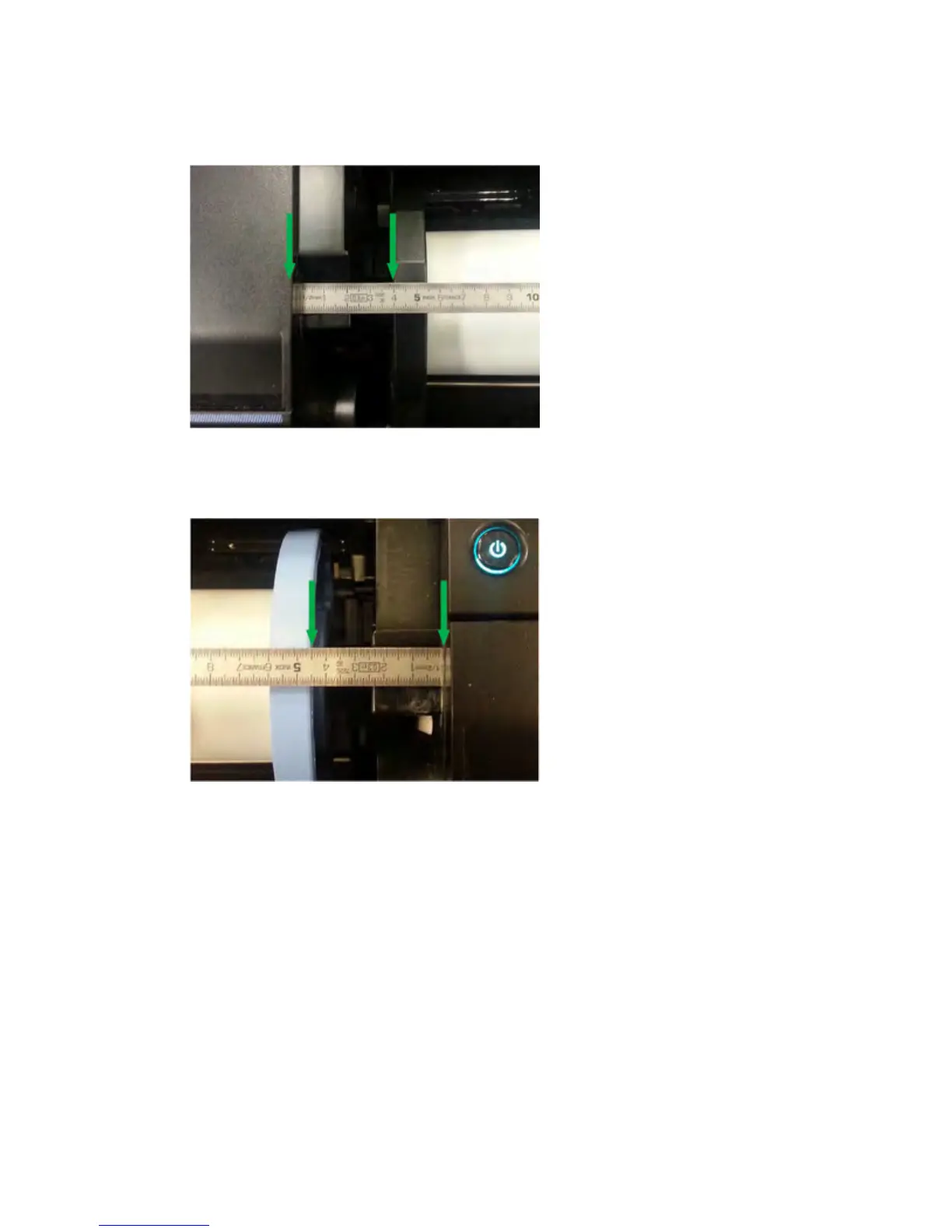 3. If customer is using 36 inch paper roll width, measure distance on the blue hub on the right (as shown in