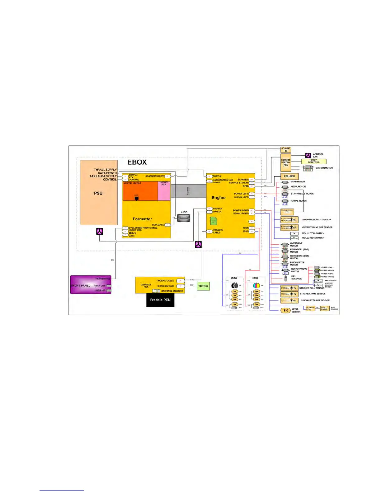 E-box - contains the power supply and all the PCAs (driving the printer), plus the Ethernet port.
