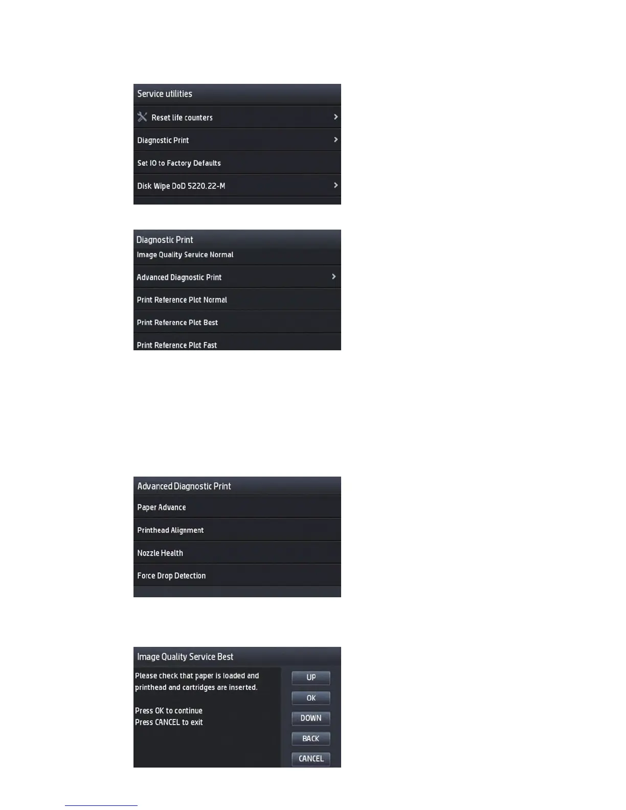 In Diagnostic Print, you can select the Image Quality Service prints or the Diagnostic Print:
