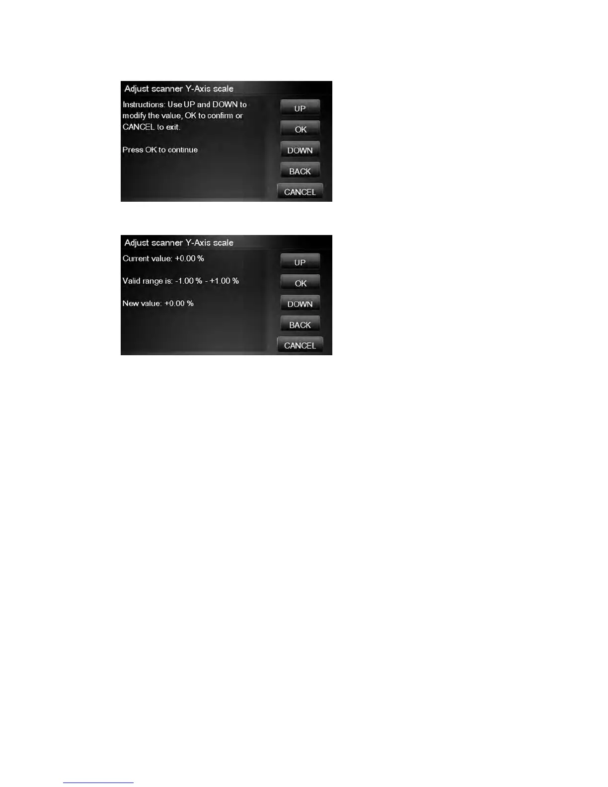 13. Press UP and DOWN to pre-set the new value of Y-Axis adjustment scale and press OK.