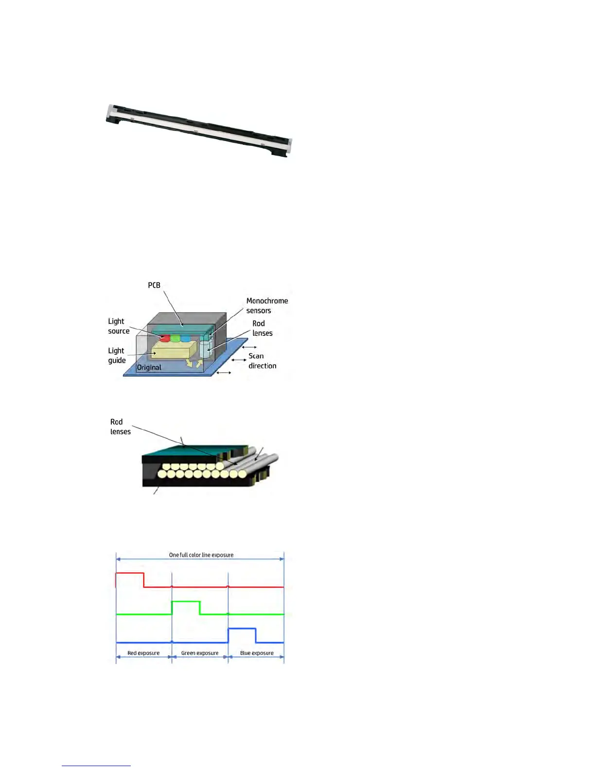 The Light source is 3 RGB LEDs that are lit one at a time. The sensor consists of 10368 individual