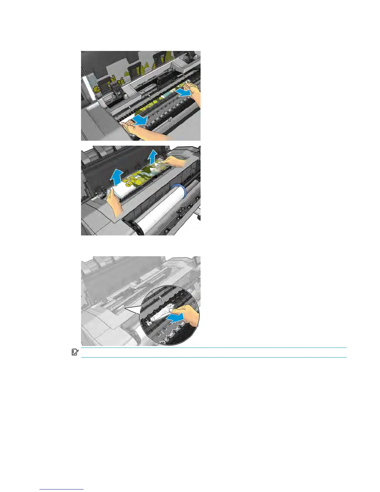 IMPORTANT: Remove remaining paper by carefully pulling it out in the direction of the paper axis.