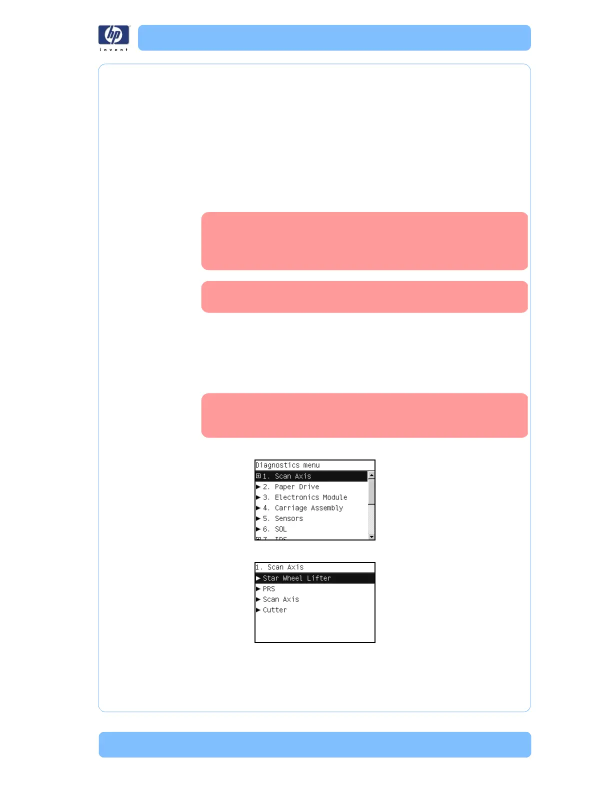 1 In the Diagnostics menu, scroll to 1. S c a n A xi s and press OK.