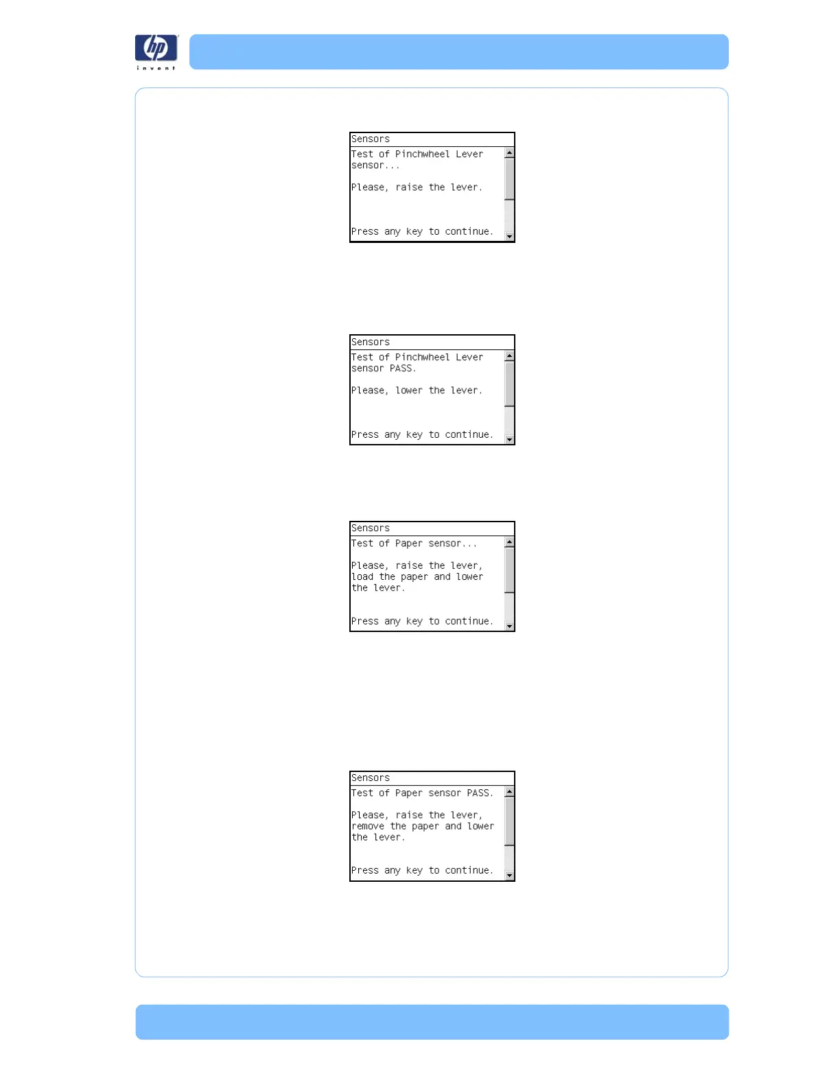 11 The Media Lever sensor test starts and the Front Panel prompts you to raise