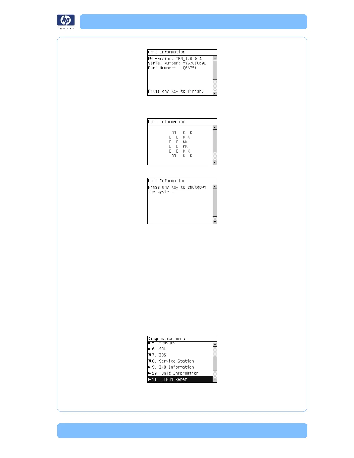 1 In the Diagnostics menu, scroll to 11. E E R O M and press OK.