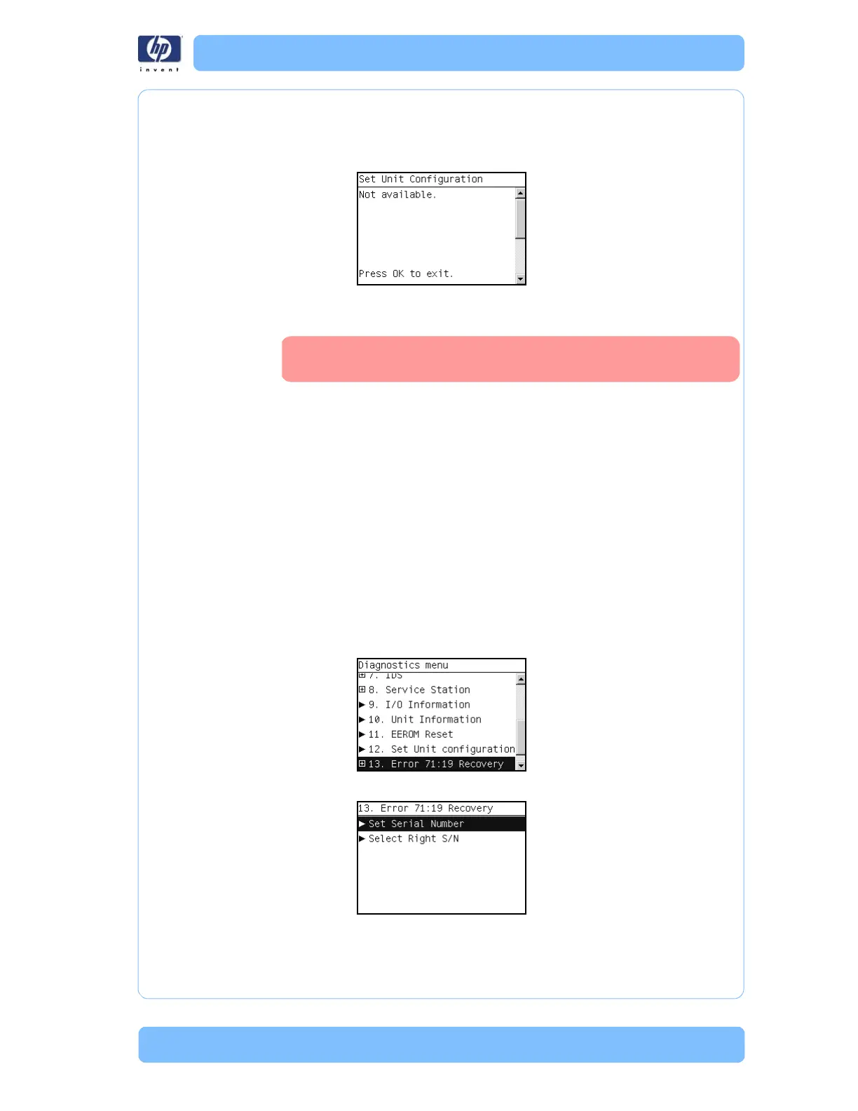 1 In the Diagnostics menu, scroll to 13. Error 71:19 Recovery and press