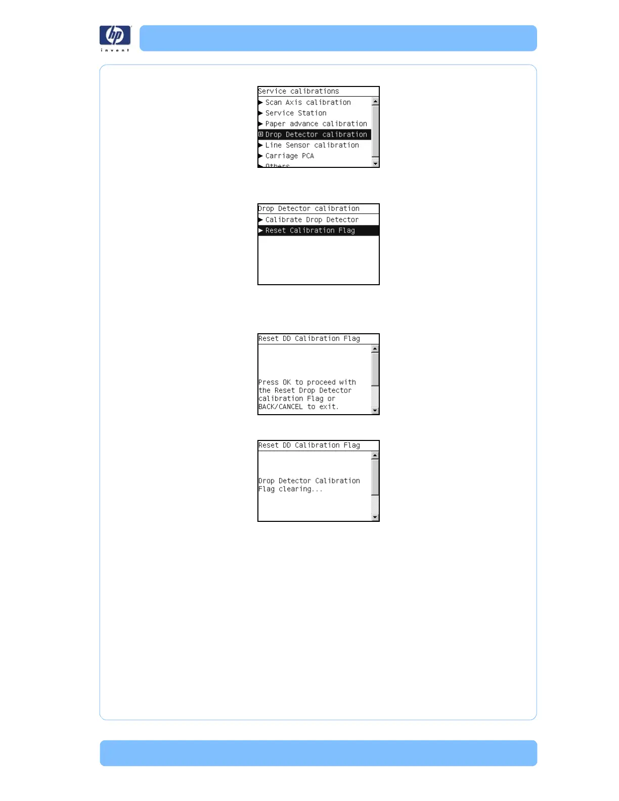 2 In the Drop Detector Calibration menu, scroll to Reset Calibration Flag