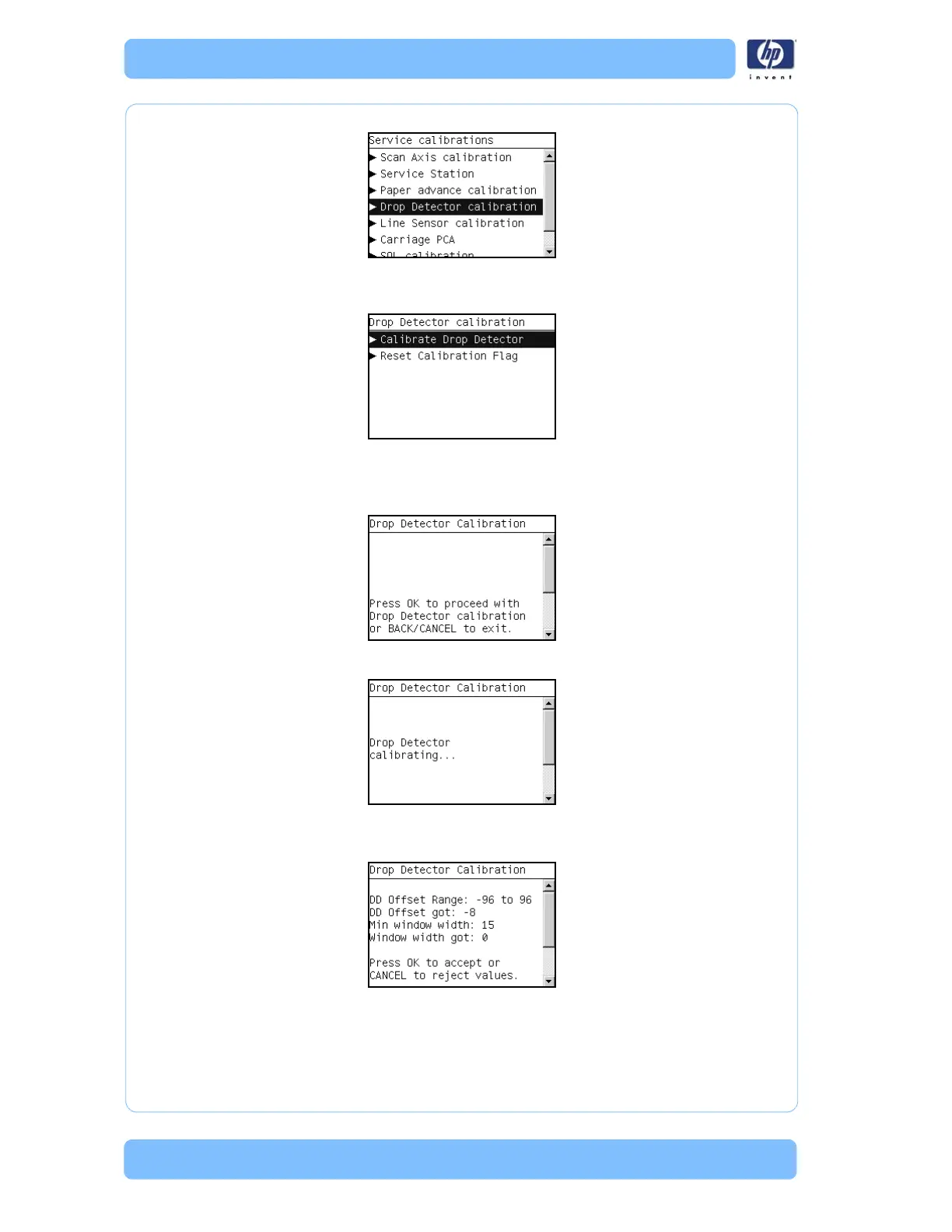 4 The Printer will start to calibrate the Drop Detector.