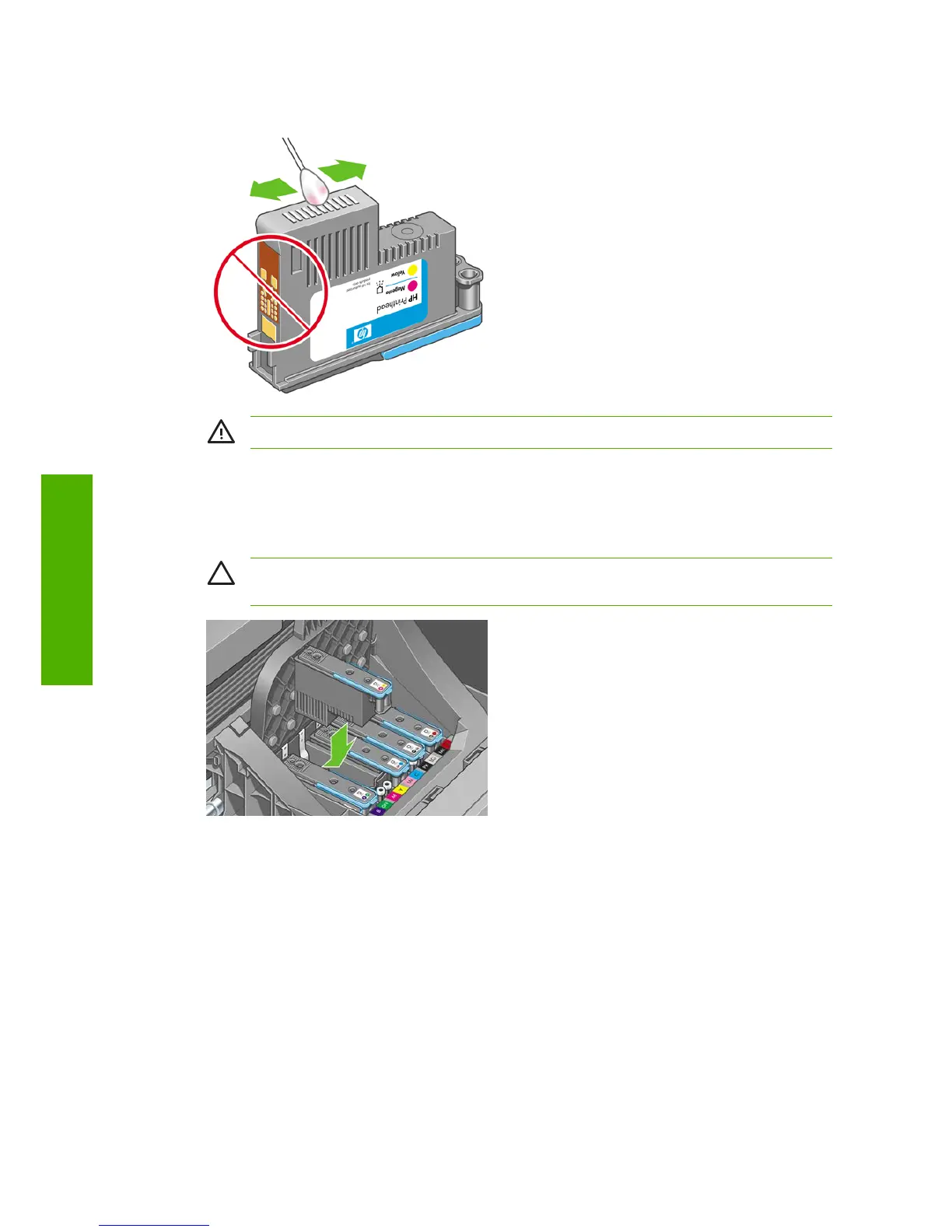 WARNING! Do not touch the electrical connections on the backside of the printhead.