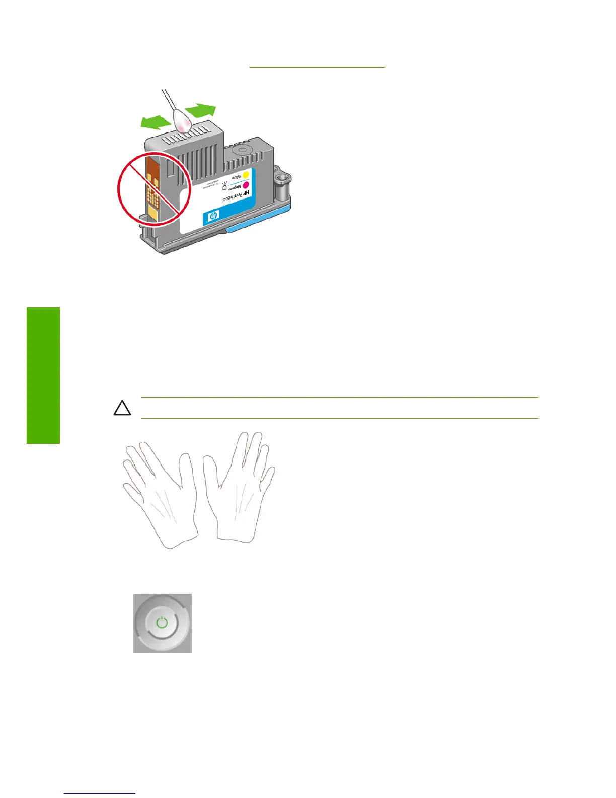 First, remove the printhead (see Remove a printhead on page 88) and then use a cotton swab and a