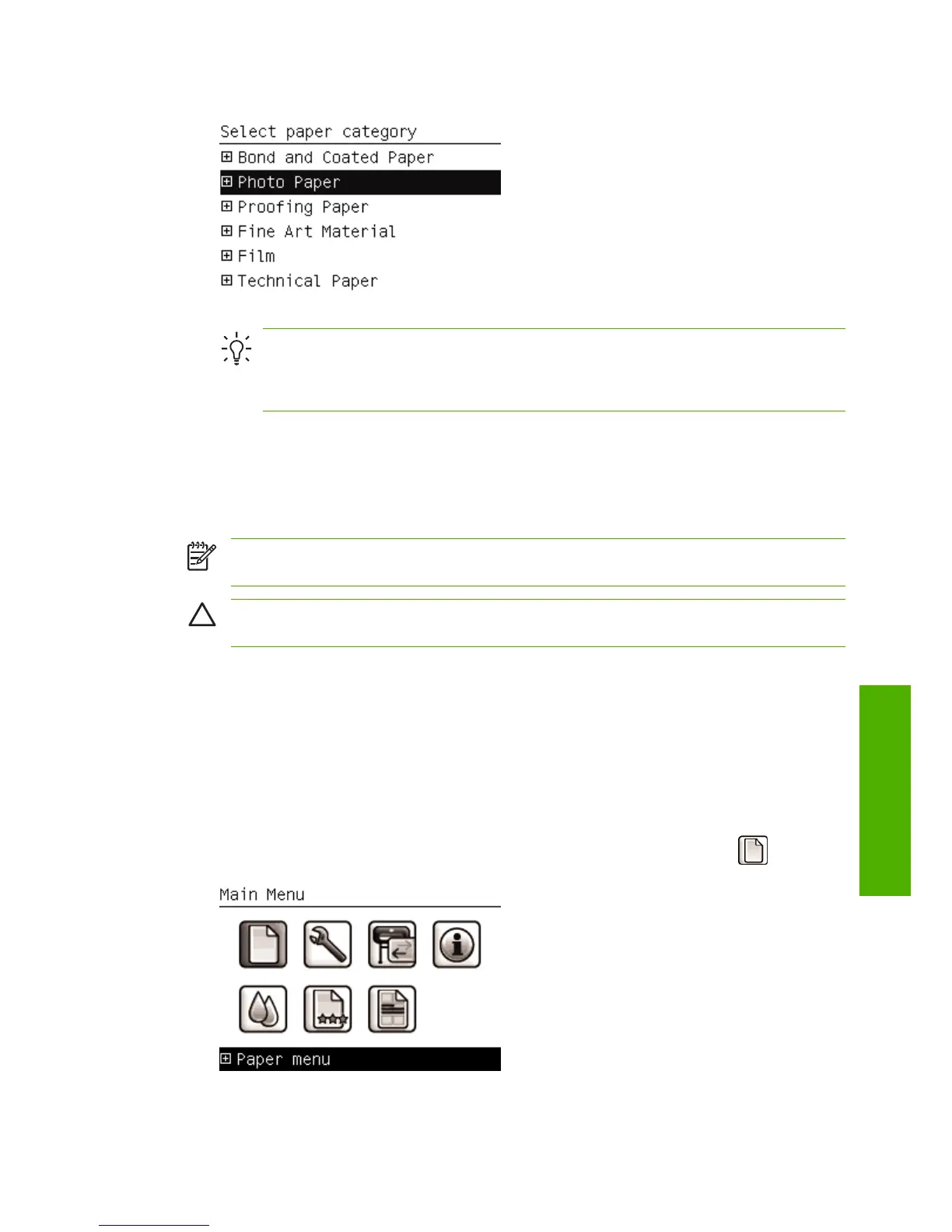Press the Menu key to return to the main menu and select the Paper menu icon