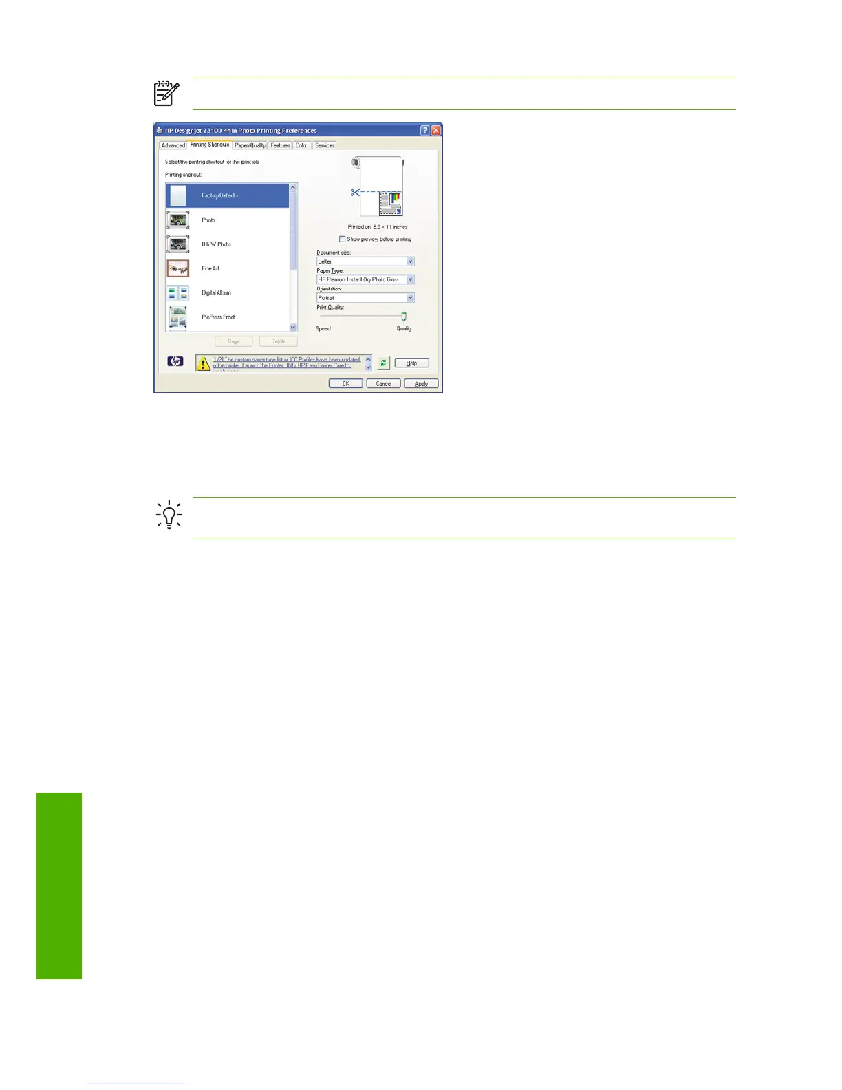 You can see a list of available shortcuts; select the one that matches the kind of job you want to print.
