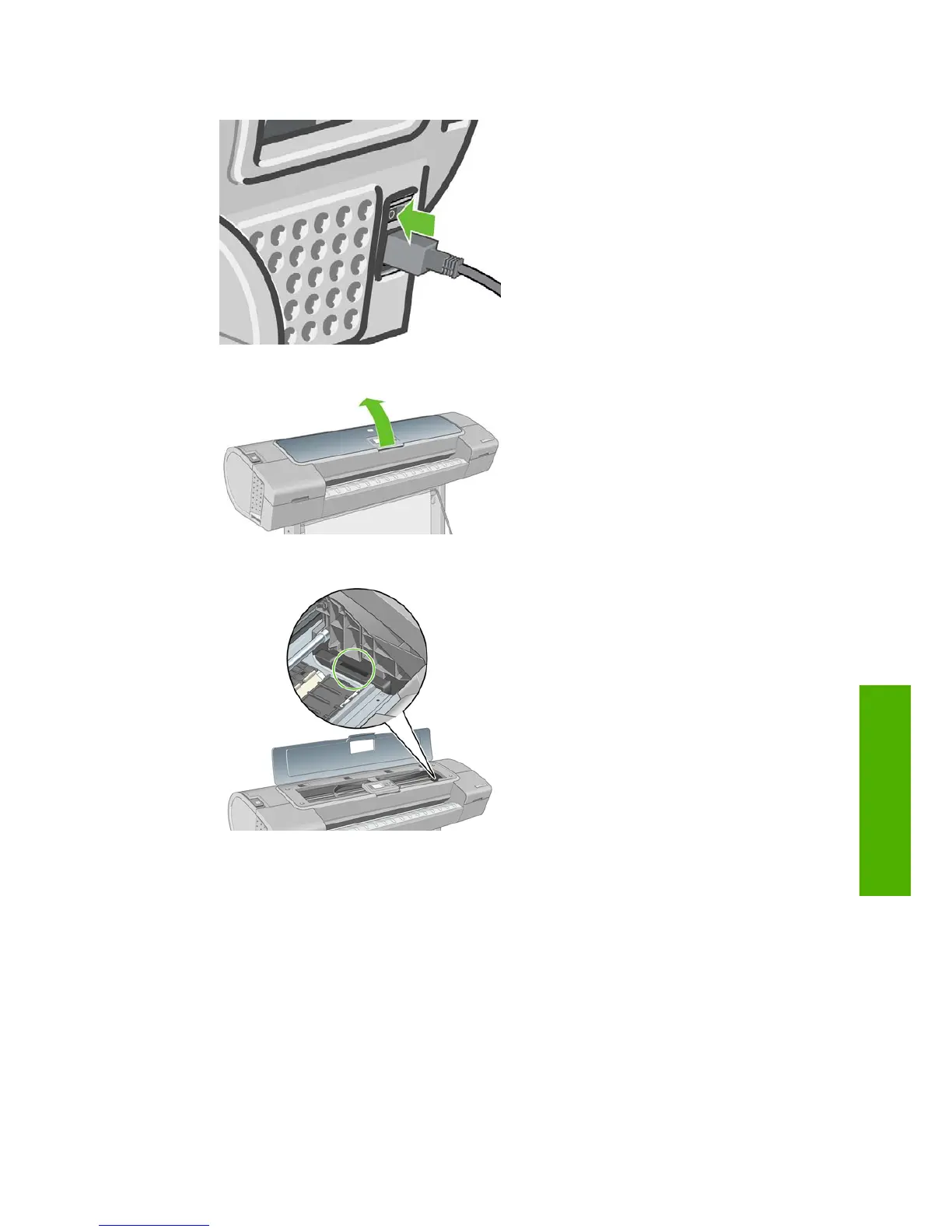 4. Find the printhead drop detector beside the stored printhead carriage.