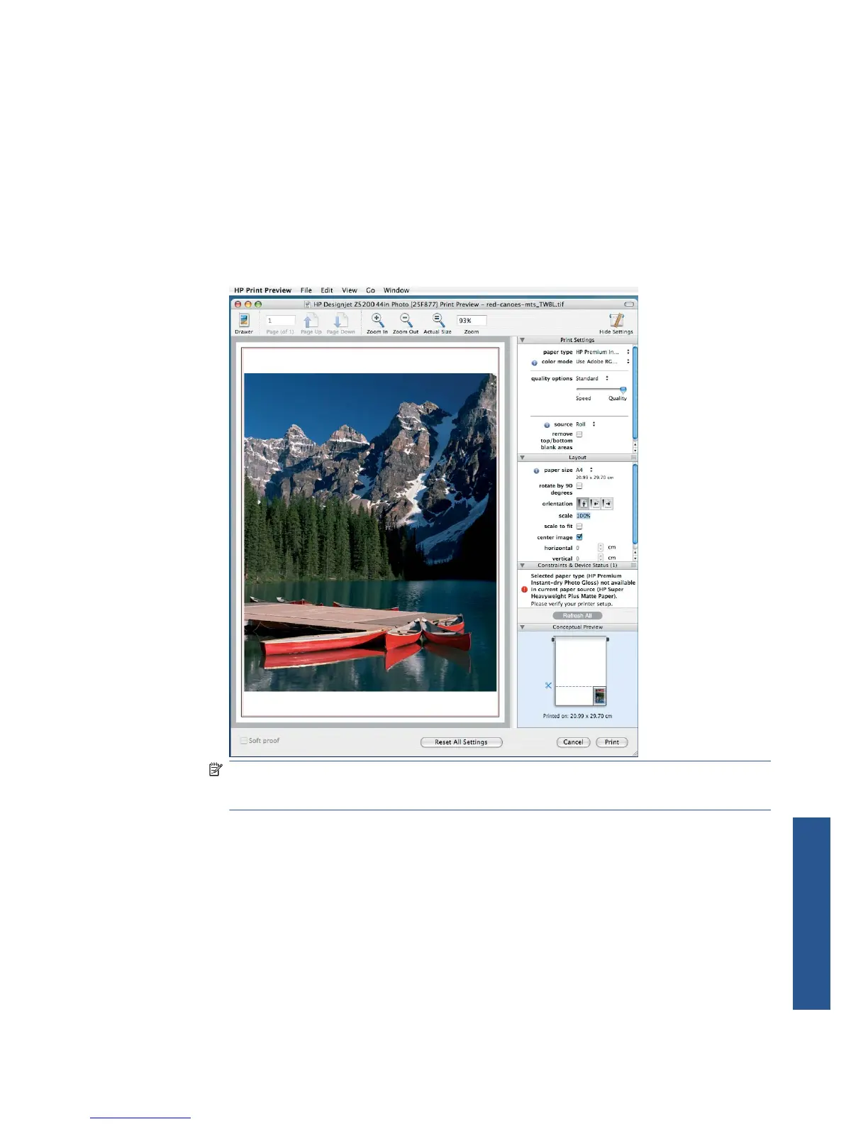 NOTE: HP Print Preview may not be available if you are using Adobe InDesign, Adobe