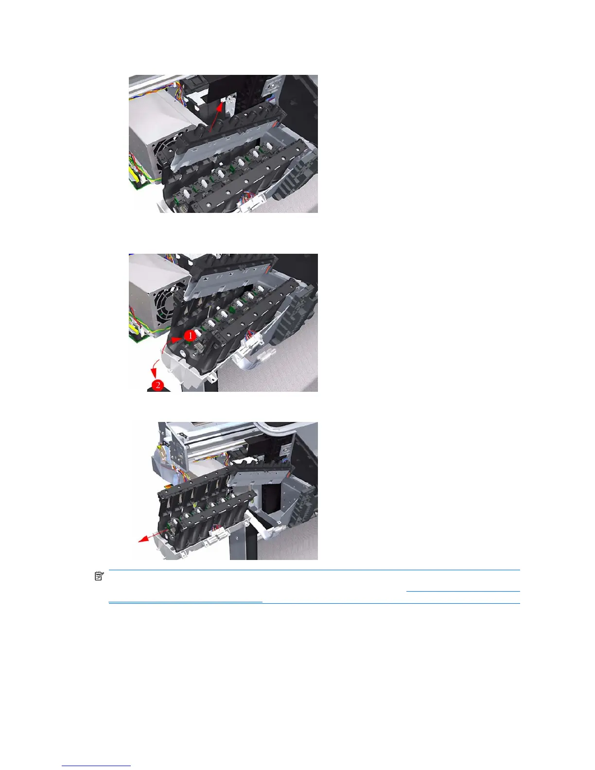 13. Carefully lift the Left Ink Supply Station completely out of the printer.