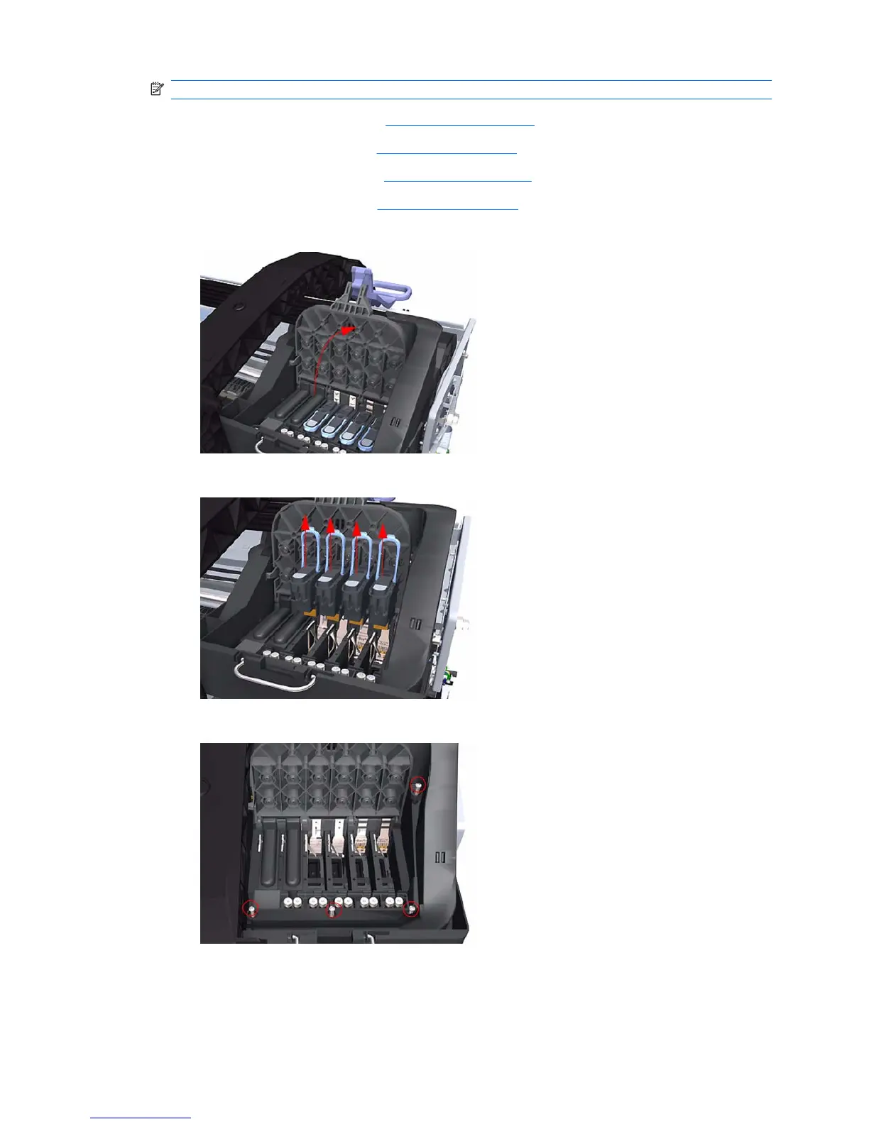 7. Remove the four T-15 screws that secure the Ink Supply Tubes to the Carriage Assembly.