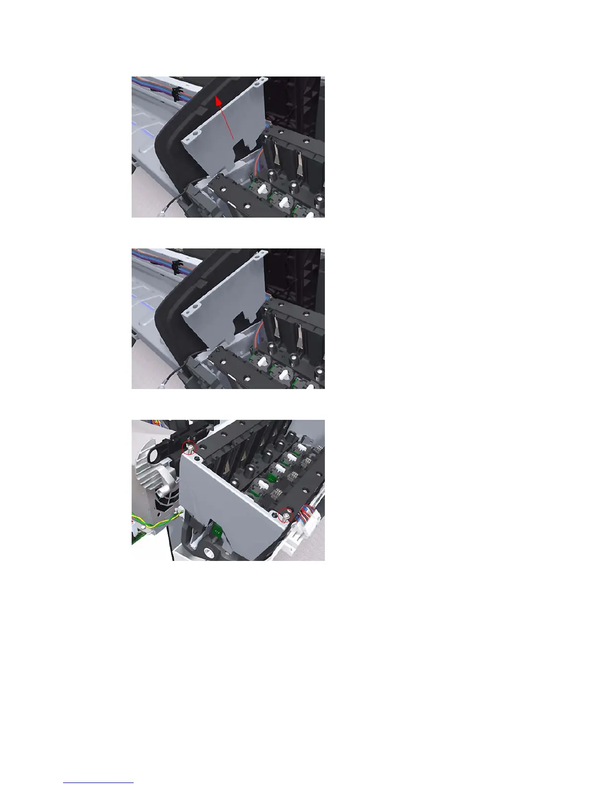 22. Remove two T-10 screws that secure the left Side Plate of the Left Ink Supply Station.