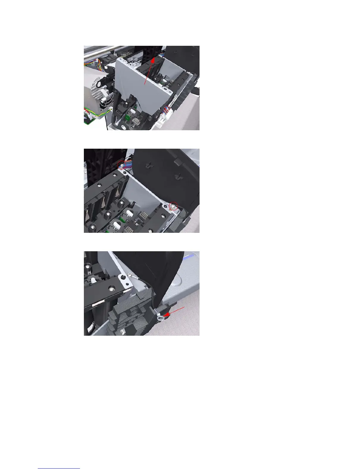 24. Remove two T-10 screws that secure the right Side Plate of the Left Ink Supply Station.