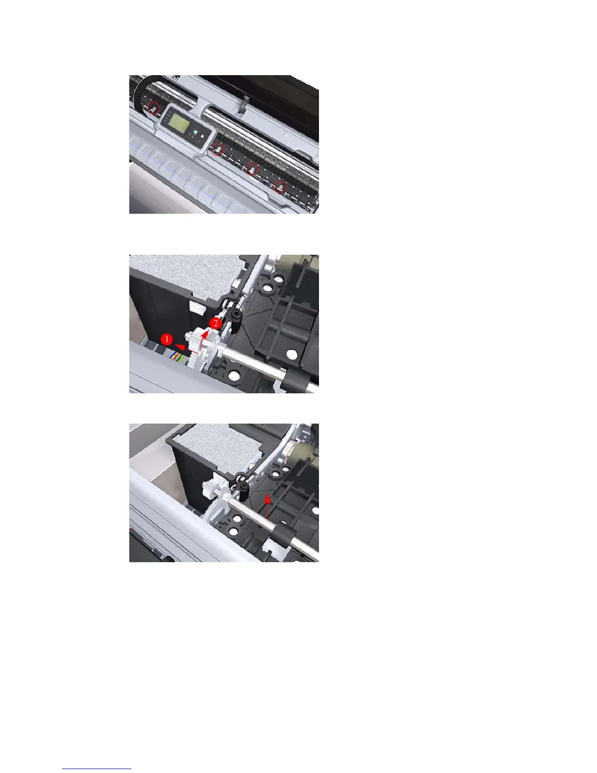 7. Carefully lift the left Print Zone Overdrive enough 10 mm) so you can slide it to the left.