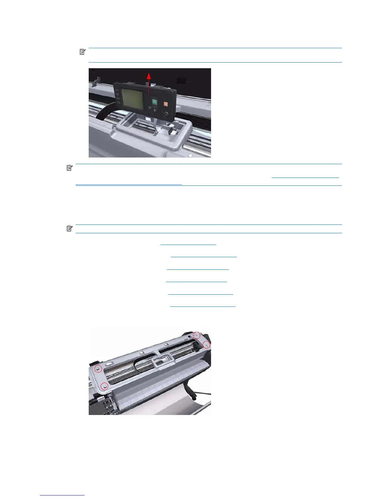 7. Remove the four T-15 top screws that secure the Top Cover to the printer.